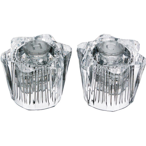 Clear acrylic. Includes hot and cold buttons and stem screw. 1 pair per card.